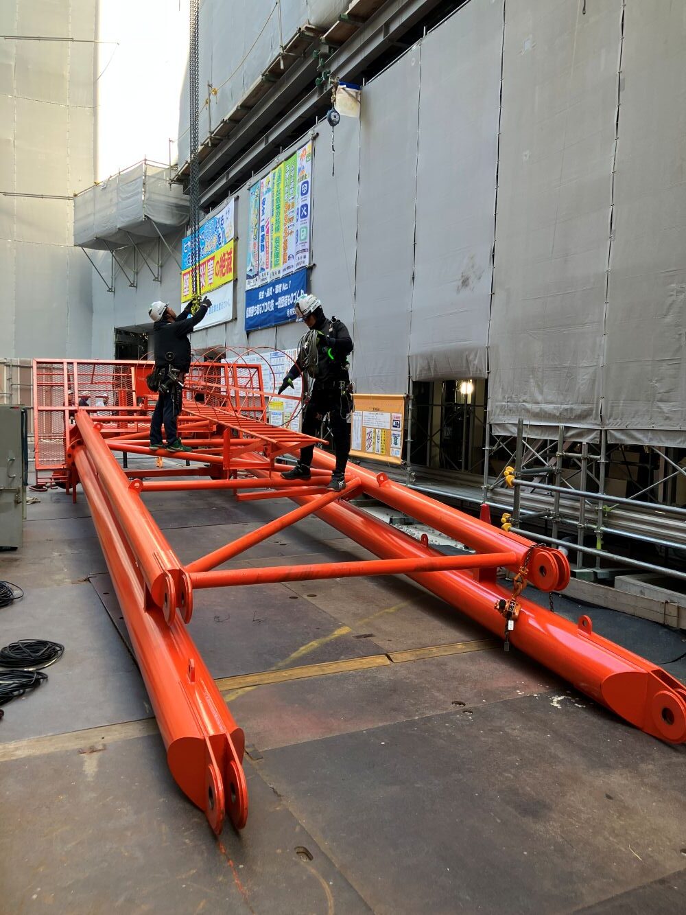 今回はタワークレーン1号機の解体を2号機を使って3日間で行いました。