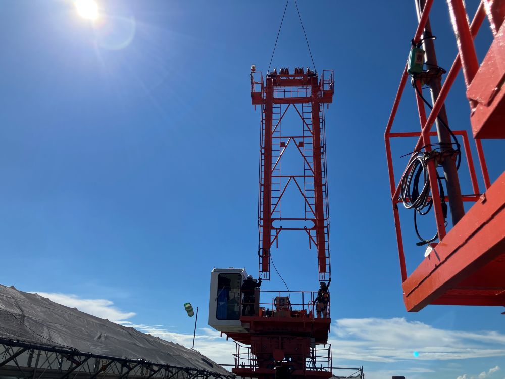 タワークレーン2号機を使ったタワークレーン3号機の組立ての様子をお届けします!